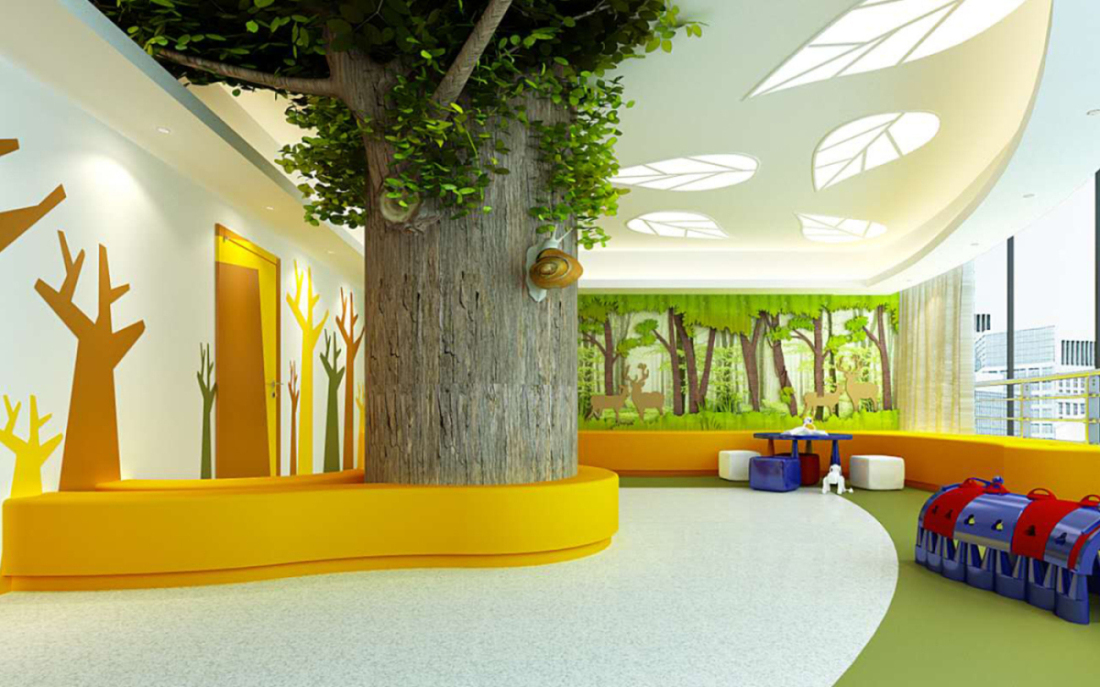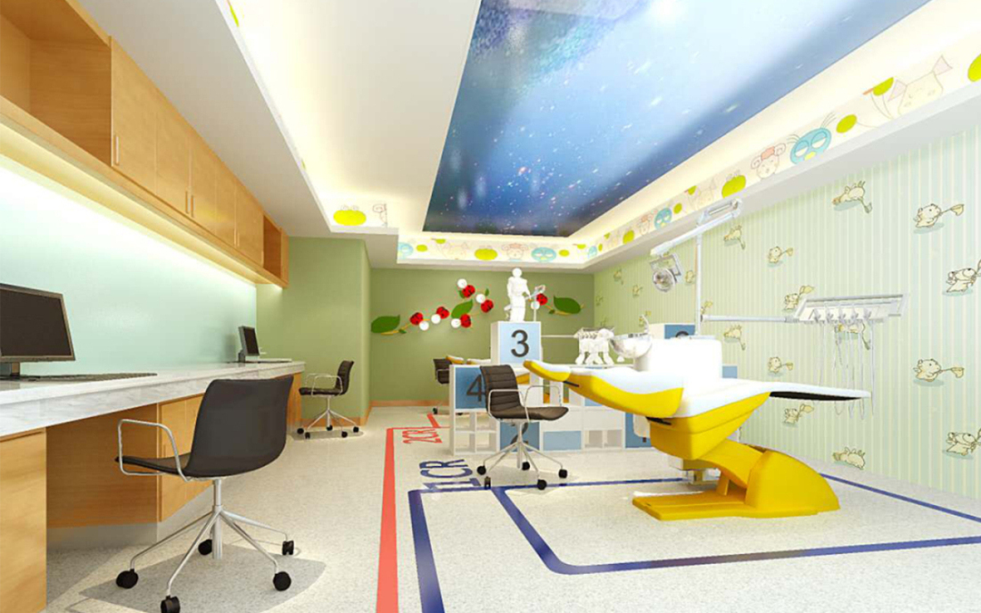兒童等候區(qū)采用“綠野仙蹤”的夢幻理念,充滿童趣的氛圍,消除兒童的等候緊張感,裝修采用柔軟無棱角設(shè)計,避免兒童的碰撞亂傷。